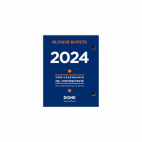 Bloque bufete anual. Cubierta realizada en cartulina impresa, con perforaciones para colocar sobre soporte para bloque. 640 páginas impresas a 2 colores en papel offset blanco de 60 gr. Con Calendario del contribuyente. Calendarios del año en curso y del siguiente, Planning mensual al final del bloque, donde anotar información para el año siguiente....