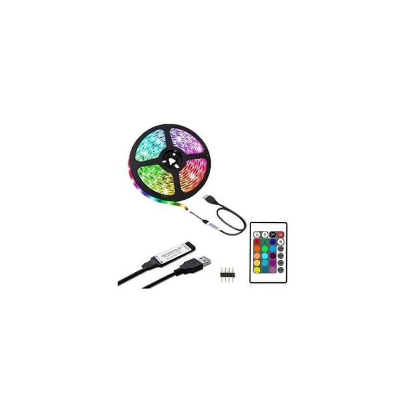 Cinta de leds con iluminación RGB que puede adoptar varias tonalidades combinando los colores rojo, verde, azul.