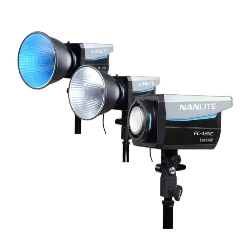El FC-120C incluye 15 efectos de iluminación incorporados, como Paparazzi, Relámpago y Fuego, y puede ser controlado mediante cuatro métodos: a bordo, control remoto, aplicación NANLINK y DMX/RDM. Además, ofrece cuatro modos de ventilador (INTELIGENTE, VELOCIDAD COMPLETA, BAJA VELOCIDAD y APAGADO) y tres opciones de fuente de alimentación, incluyendo adaptador de corriente, batería V-mount y fuente PD.