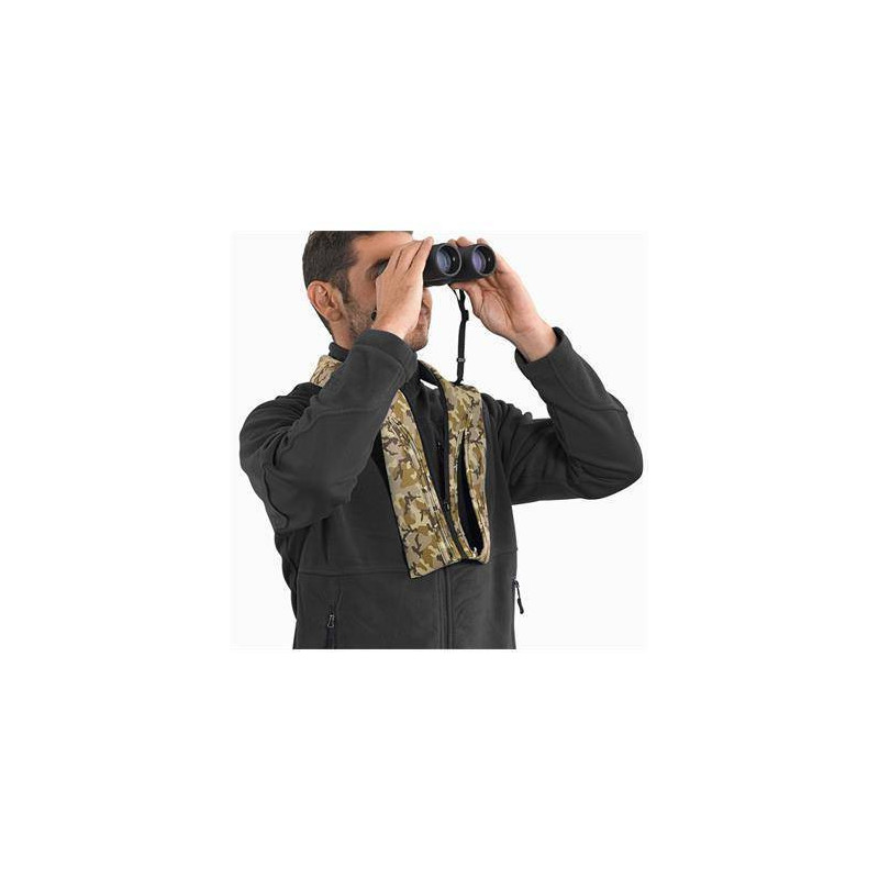 Destinado a los excursionistas, observadores de aves, cazadores y amantes del aire libre, este soporte revolucionario permite a los usuarios llevar fácilmente los prismáticos al cuello, con el beneficio adicional del ajuste de posición para satisfacer todas las necesidades del usuario. Después de usar los prismáticos, simplemente cierra la cremallera y enrolla la correa alrededor de los mismos. En menos de 2 segundos se convierte en un estuche protector acolchado que se puede guardar directamente dentro de una mochila. Diseñado para prismáticos hasta 10×42, la Strap&Wrap de miggö está fabricada con Neopreno ligero de alta calidad, resistente a impactos y en Lycra agradable que permite llevar los prismáticos durante todo el día en el cuellosin cansarse. La Lycra es un material silencioso que permite visualizar animales sin miedo a ser descubiertos. Existen un par de bolsillos específicamente diseñados para proteger los prismáticos de objetos afilados cuando los tenemos alrededor del cuello. Cuando está en modo enrollada, la Strap&Wrap de miggö protege los prismáticos de ralladuras e impactos dentro de la mochila – incluso estando llena con otros dispositivos. La Strap&Wrap de miggö está disponible en 2 colores: negro con toques deazul, y diseño de camuflaje.