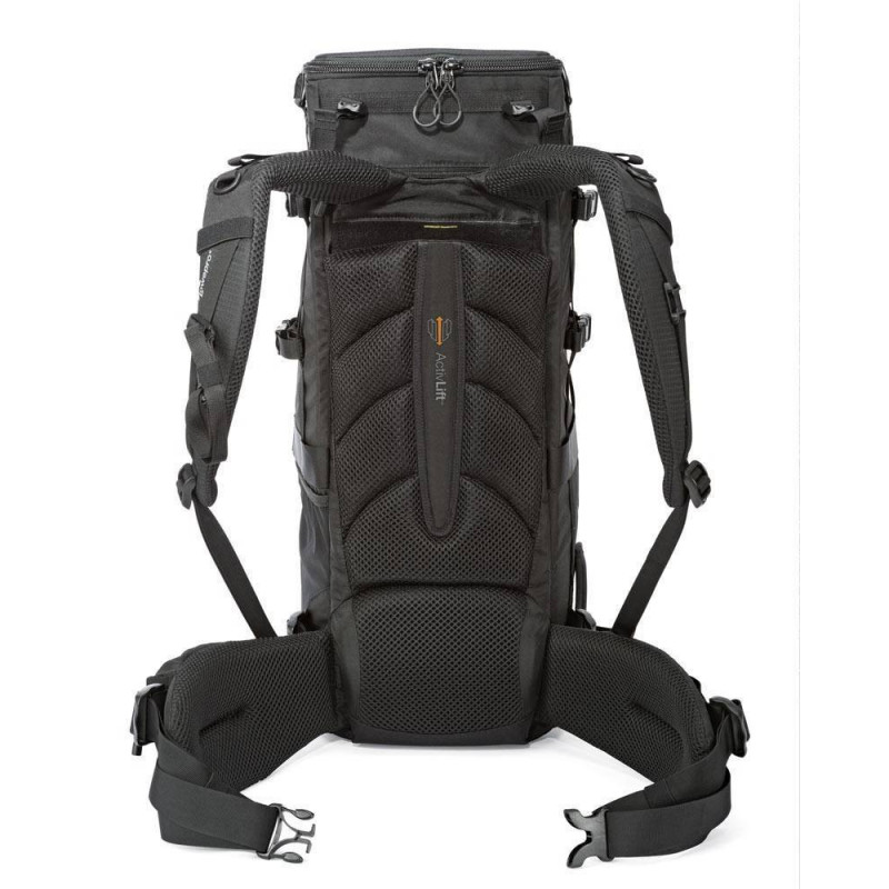 Sistema de arneses ajustable con apoyo lumbar acolchado.