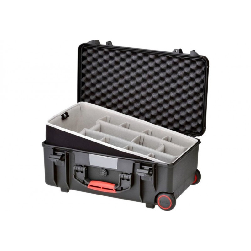 HPRC serie 2550W (High-Performance Resin Cases) con cubo de goma espuma interno y Ruedas. Es muy liviana, a prueba de agua e irrompible.