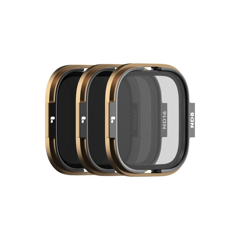 El filtro ND8 requiere una compensación de 3 pasos, el ND16 requiere 4 pasos de compensación y el ND32 requiere 5 pasos. El uso de filtros ND permite disparar con velocidades de obturación más cinematográficas en exteriores. Cada filtro tiene 16 capas de recubrimientos que brindan protección contra reflejos, rayones, huellas dactilares, así como gotas de agua y aceite.