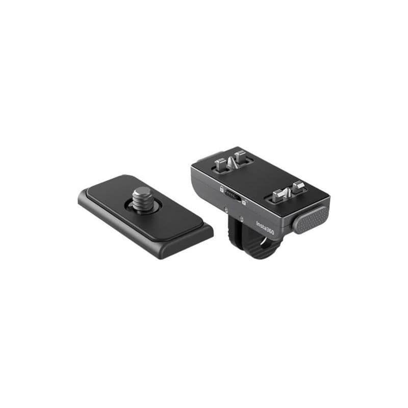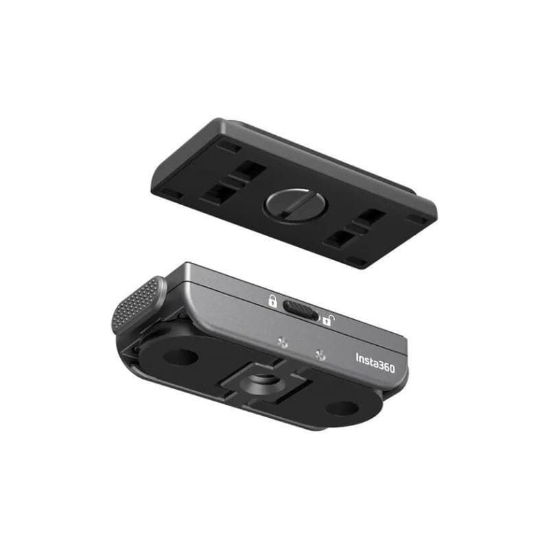 La Montura de Liberación Rápida de Insta360 te permite acoplar y desmontar tu cámara Insta360 de forma rápida y segura en una variedad de soportes