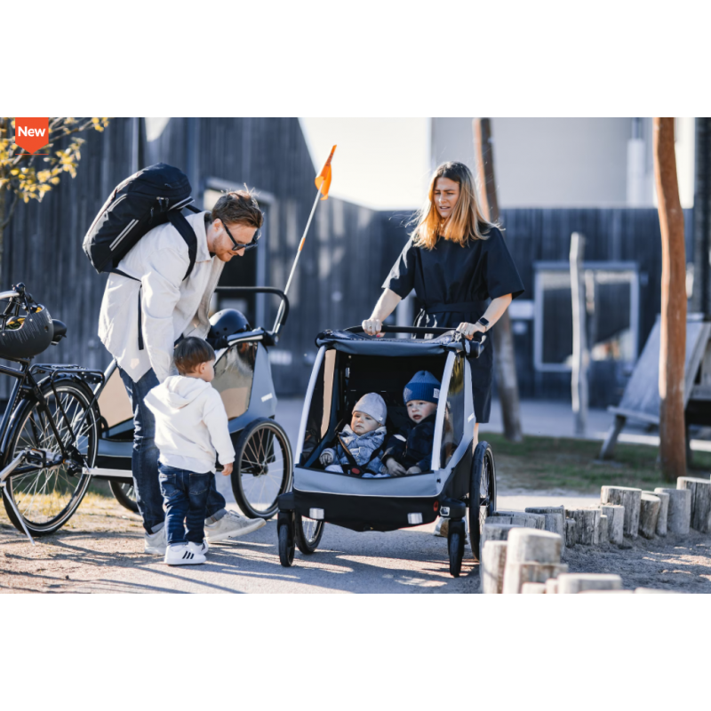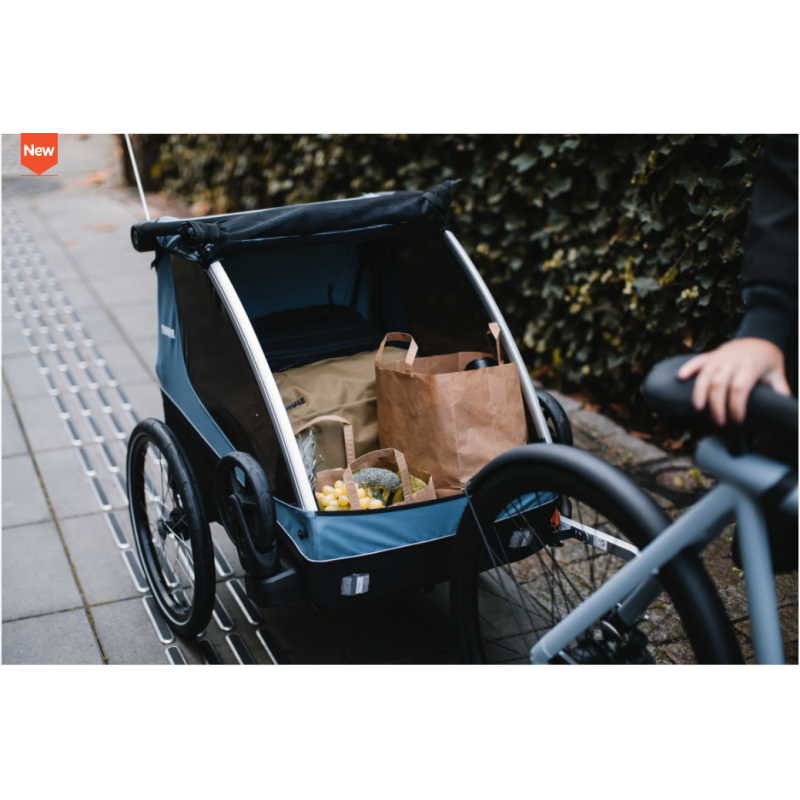 ¿Quieres llevarte a tu perro de paseo? ¡Ahora sí puedes! El kit de remolque para perros opcional transforma el Thule Courier en un remolque ideal para tu perro. Incluye una cama blanda y un techo con cubierta para la lluvia integrada, para que puedas incluir a tu mejor amigo en tus aventuras al aire libre.
