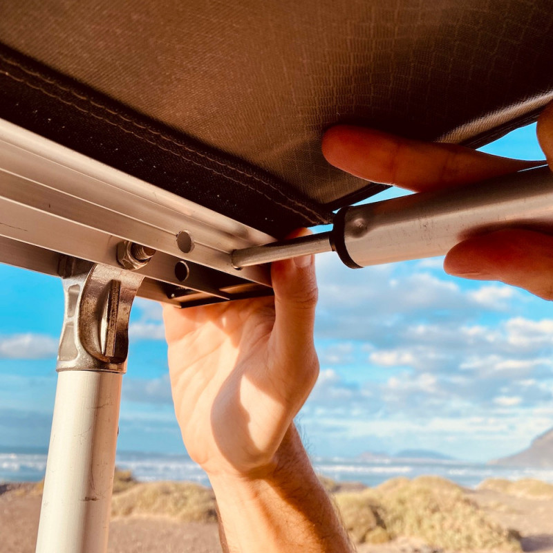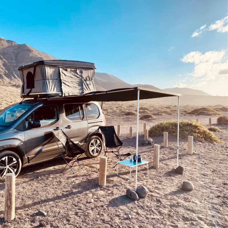 El compañero de viaje imprescindible de cualquier tienda de techo. Ligero, resistente y fácil de montar y desmontar.