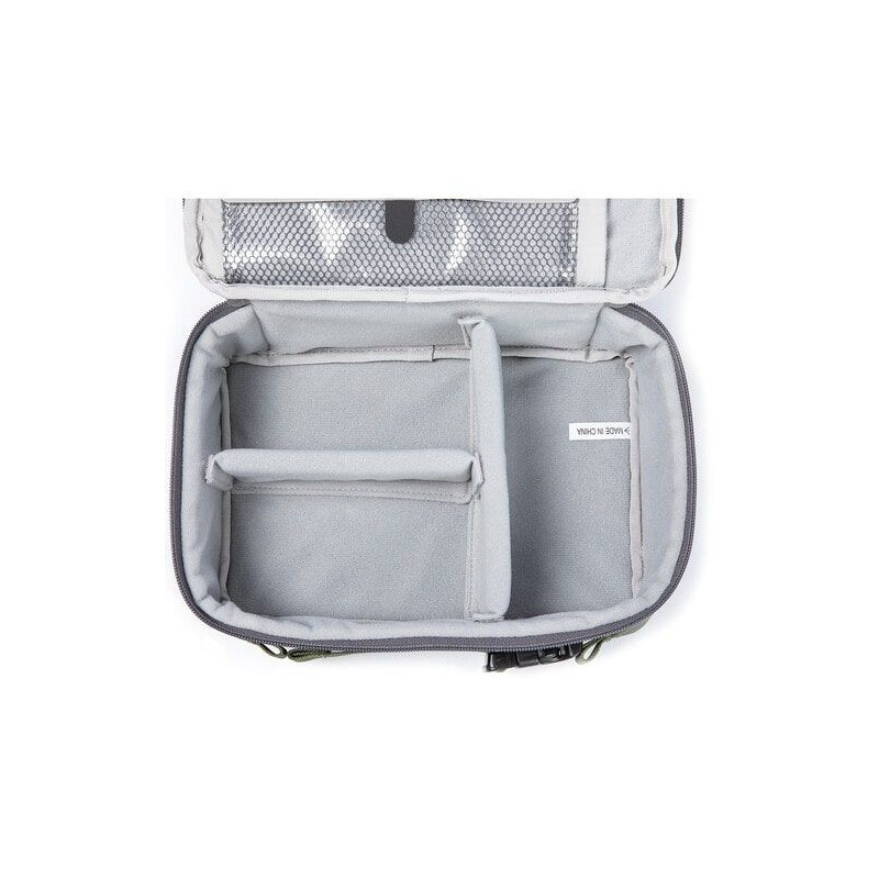 El estuche tiene un compartimento principal para guardar su dron, control remoto y otros artículos más grandes, y ofrece dos divisores de velcro acolchados que se pueden personalizar según el diseño deseado. En el interior de la tapa se encuentra el siguiente almacenamiento adicional para una variedad de accesorios: