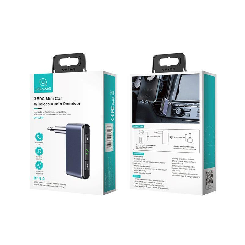 Receptor de Audio Inalámbrico Mini para el Coche 3.5 Mm Gris USAMS