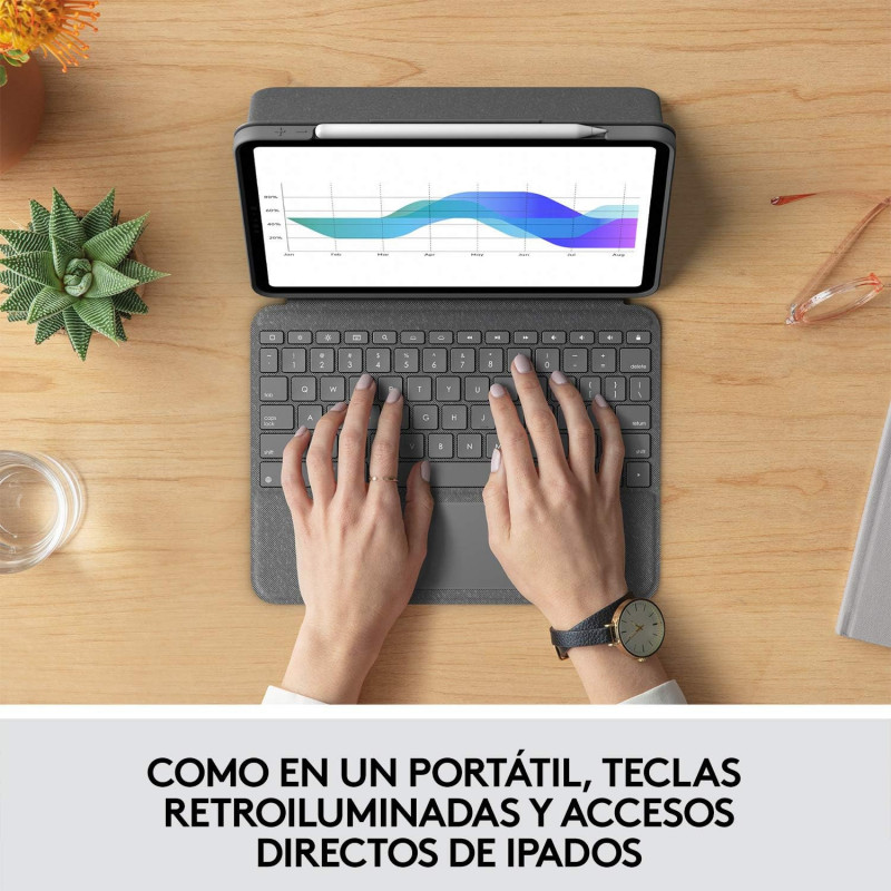 Funda con Teclado LOGITECH Retroiluminado con Trackpad para Ipad Pro de 11 Pulgadas (1.ª, 2.ª, 3.ª y 4.ª Gen.) y Ipad Air (4.ª,