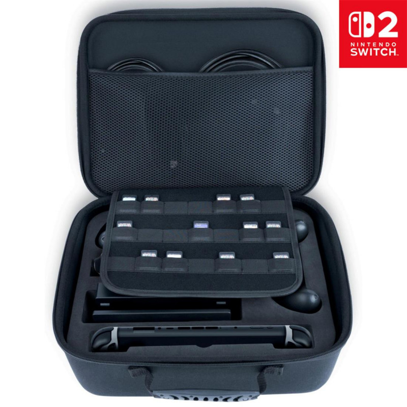 La Funda de Transporte Rígida Nacon Negra XXL es el accesorio ideal para los amantes de la Nintendo Switch 2, asegurando que tu consola y todos sus componentes estén siempre protegidos y organizados.