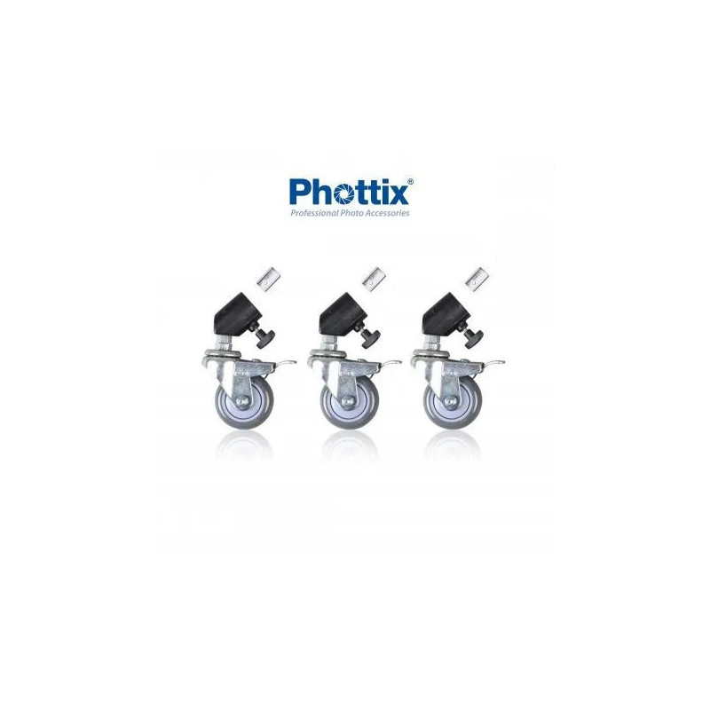 Juego de ruedas robusto y resistente que nos permite dar movilidad a nuestros pies de estudio en cualquier tipo de superficie