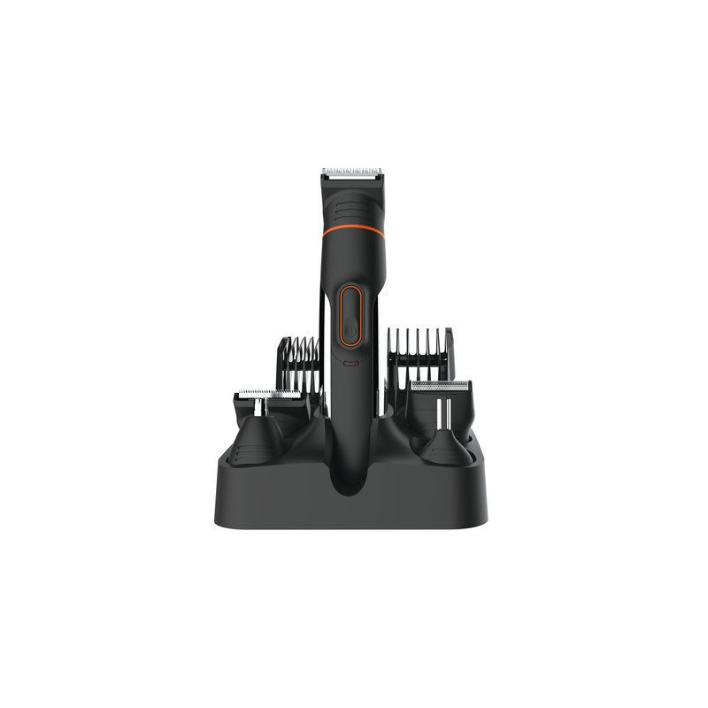 Sin cable. Autonomía 60 minutos y recargable. Cable USB incluido. Carga rápida de la batería: 2 horas e impermeable al agua. IPX5. 7 accesorios intercambiables: 2 rasuradoras, afeitadora, especial nariz, especial orejas y cejas. Guía de corte multi-posición de 0 a 10 mm y guía de corte multi-posición de 3 a 15 mm. Cabezales extraíbles para fácil limpieza, cuchillas de acero inoxidable de alta resistencia, interruptor de encendido e indicador luminoso de carga. Gran precisión de corte. Accesorios incluidos: peine, aceite lubricante, cepillo para limpieza de cuchillas y bandeja soporte. Multicorriente de 100-240 V.EAN: 8421078034087