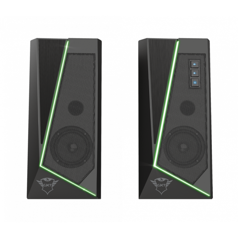 ESPECIFICACIONES General Type of speaker 2.0 Height of main product (in mm) 180 mm Width of main product (in mm) 83 mm Depth of main product (in mm) 100 mm Total weight 750 g Weight of main unit 750 g Features NFC no Hands-free phone calls no Tripod mount no Power saving no Control Remote control no Controls light color mode, lights on/off, volume control Connectivity Connection type wired Bluetooth no Cable length power cable 140 cm Cable length audio cable 140 cm Cable length satellite cable 90 cm Audio Power output (peak) 12 W Power output (RMS) 6 W Frequency response 20 Hz - 20000 Hz Driver size 40 mm Driver units 2 Speaker impedance 4 Ohm Input impedance 10000 Ohm Audio input 3.5 mm Audio output None Headphone connection no Microphone built-in no Microphone connection no Lighting Lights yes Light type RGB LED Protection Waterproof no Power Power cable detachable no Input Power source USB Compatibility Compatible Device Types laptop, pc Satellites Satellite Height (mm) 180 mm Satellite Width (mm) 83 mm Satellite Depth (mm) 100 mm Satellite Weight (gr) 375 gr información extra Número de referencia 24070 Código EAN 8713439240702 Garantía 2 años Contenido del paquete Juego de altavoces Manual del usuario Requisitos del sistema Conexión de audio de 3,5 mm Puerto USB (para alimentación) https://www.trust.com/es/product/24070-gxt-609-zoxa-rgb-illuminated-speaker-set