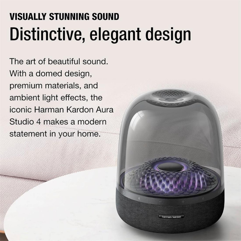 El Harman Kardon Aura Studio 4 es el altavoz perfecto para aquellos que buscan una experiencia de sonido excepcional en su hogar. Gracias a sus distintos canales y amplificadores dedicados, este altavoz reproduce tu música con una precisión milimétrica, revelando cada detalle sonoro con una claridad impresionante.
