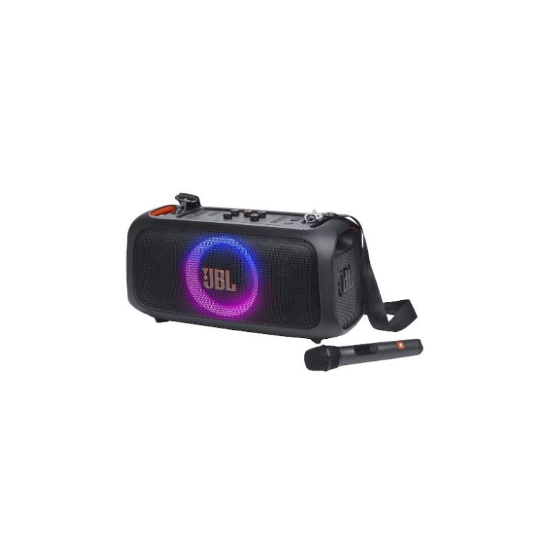 JBL PartyBox On-The-Go Essential viene con un micrófono inalámbrico JBL con un alcance de hasta 10 metros