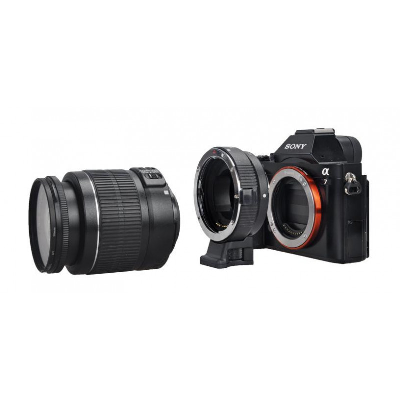 Commlite utiliza la nueva tecnología electrónica, que puede hacer que la abertura quede exactamente alineada a través del adaptador, y además ajustó el enfoque automático. Mejora la comodidad de controlar la lente Canon EF serie de cuerpos de cámara micro-Sony sola en el medio electrónico. Además, el diseño de la abertura del adaptador se basa en las cámaras NEX Full-Frame, por lo que soportan A7 / A7R / A7RII / A7RS.