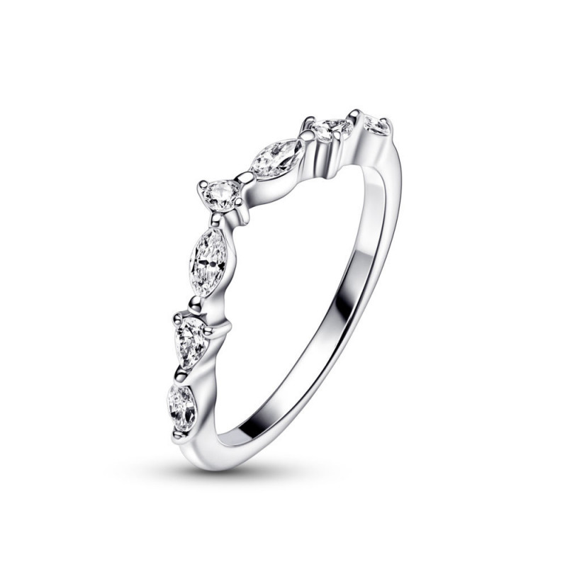 Anillo en plata de primera ley Deseo Alterno Brillante adornado con circonitas cúbicas transparentes de talla brillante y circonitas facetadas transparentes de talla pera y talla marquesa
