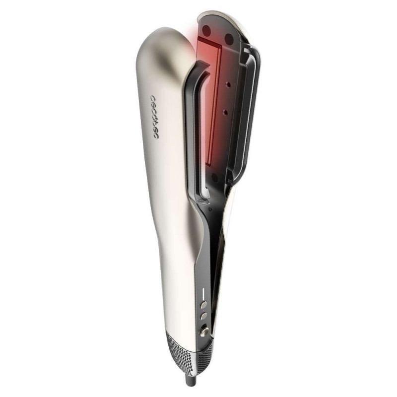 Plancha de pelo con aire con 2 cabezales: cepillo y concentrador. Tiene 106000 rpm con un motor digital de alta tecnología. Seca y alisa tu cabello con esta plancha ahorrando tiempo.