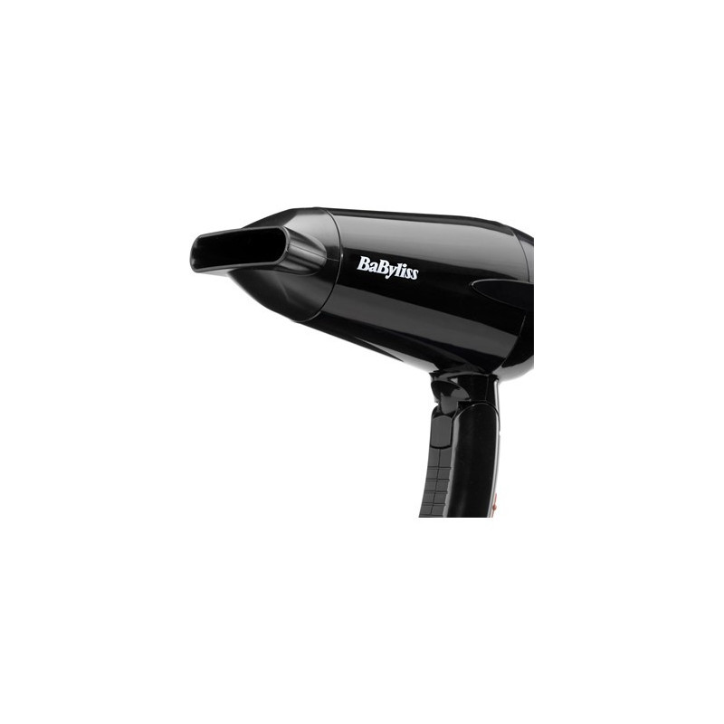 Nombre del modelo BaByliss 5344E Secador de viaje plegable con 2000W de potencia, 2 velocidades y temperaturas, doble voltaje, compacto, ligero 318 g, boquilla concentradora incluida, color negro
