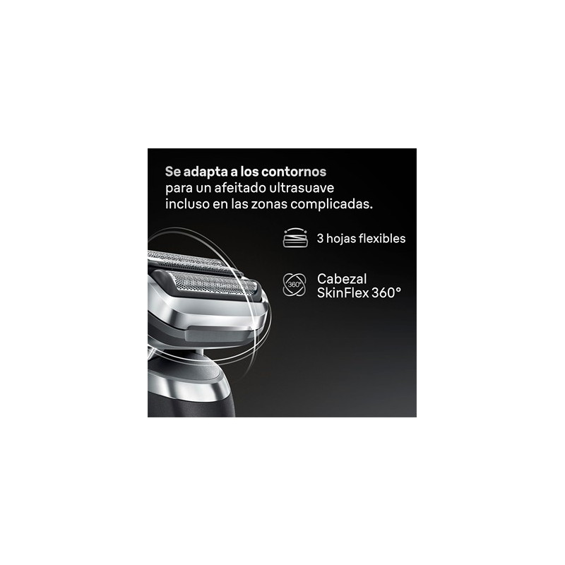 Afeitado más apurado y rápido: el cabezal SkinFlex de 360 grados y las 3 láminas de corte flexibles se adaptan a los contornos de tu cara para un afeitado más apurado (vs. la anterior Series 7) incluso en las zonas más difíciles