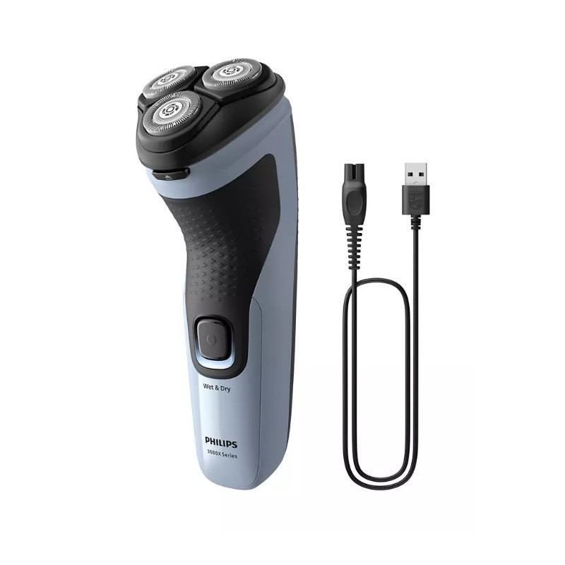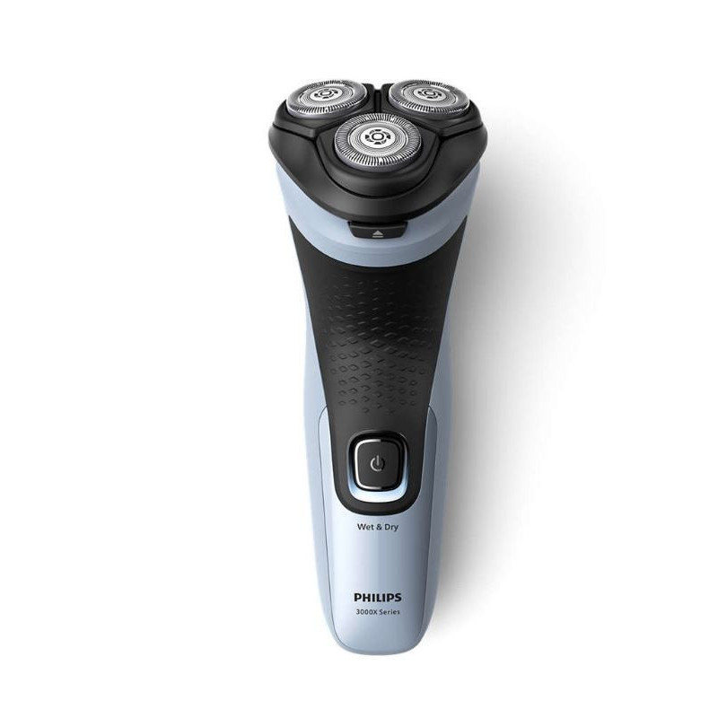 La afeitadora eléctrica Wet & Dry serie 3000X de Philips te ofrece un afeitado cómodo y apurado por una buena relación calidad-precio. Las 27 cuchillas autoafilables PowerCut, su uso en seco y en húmedo y su cortapatillas desplegable hacen que la afeitadora sea fácil de usar y siempre fiable.