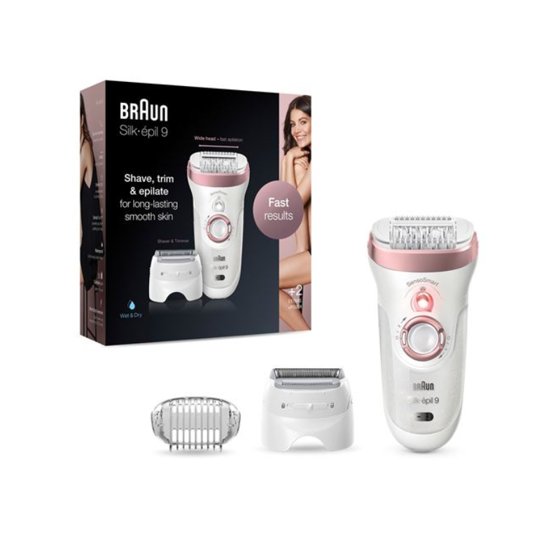 La Silk-épil 9 incluye un cabezal ancho para ofrecerte una depilación más rápida y resultados inmediatos. Incorpora accesorios adicionales para rasurar, recortar y depilar de raíz para una piel suave durante semanas, no solo días.