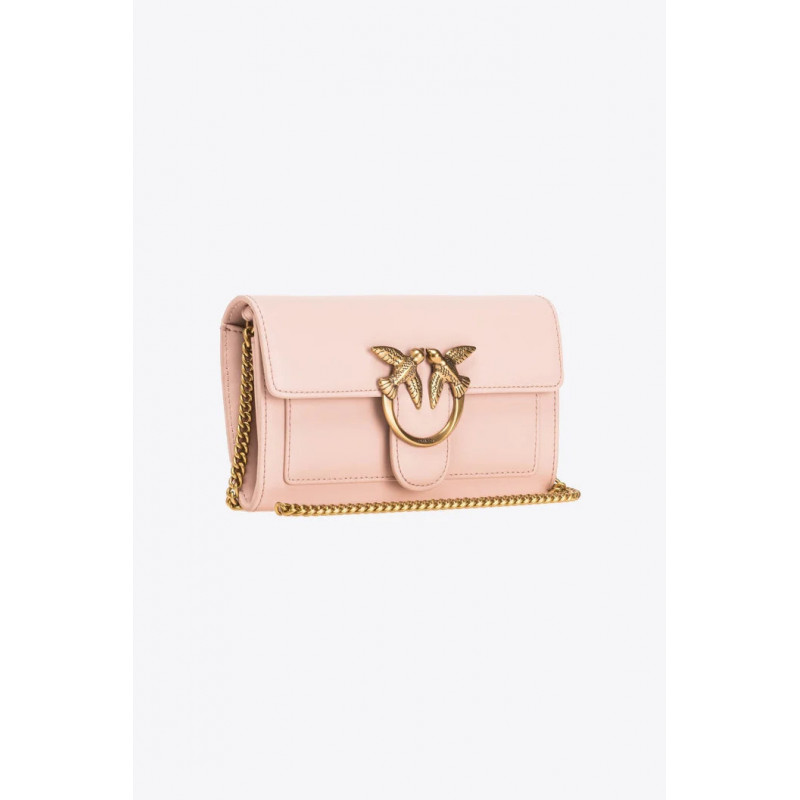 Cartera Love Bag en bandolera de piel lisa y acabado sedoso. El cierre con botón oculto se completa con la emblemática hebilla Love Birds Diamond Cut. El interior presenta un forro de polialgodón y está dividido en cuatro compartimentos, uno de los cuales tiene cierre de cremallera y dos tienen ranuras para las tarjetas de crédito. La correa metálica de cadena redonda permite llevar esta cartera como un bolso bandolera y es extraíble. Forro: POLIÉSTER 100% - Piel: PIEL DE BECERRO 100% - Accesorio: Cinc 100% * Altura: 10 cm * Anchura: 2 cm * Longitud: 20 cm