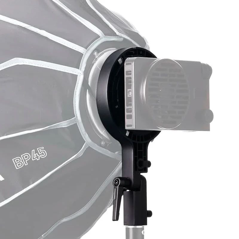 Hecho de aleación de aluminio y nailon, este anillo adaptador sujeta de forma segura la luz y los accesorios de la serie Wonder, proporcionando una cómoda solución de iluminación con montaje Bowens.
