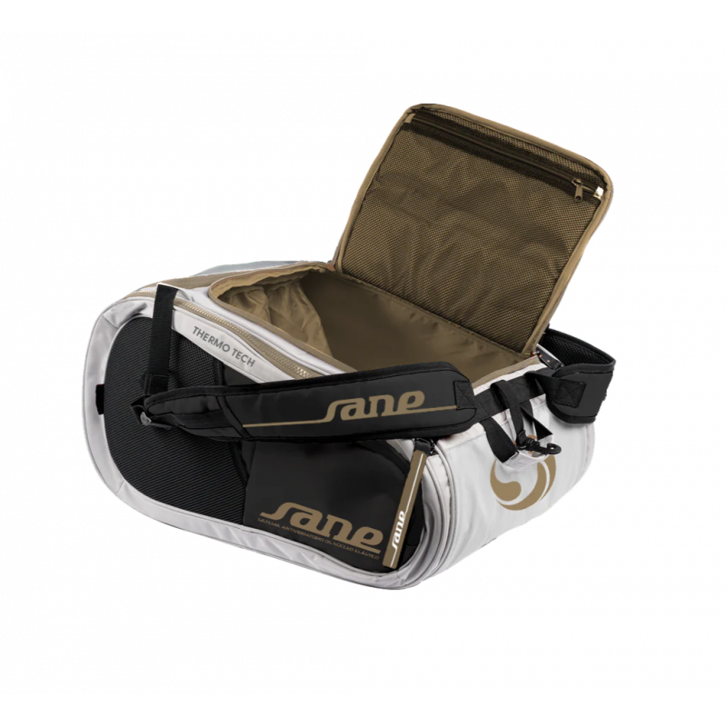 • Gran bolsillo principal con cierre de cremallera para llevar palas, ropa de repuesto y tubos de pelotas