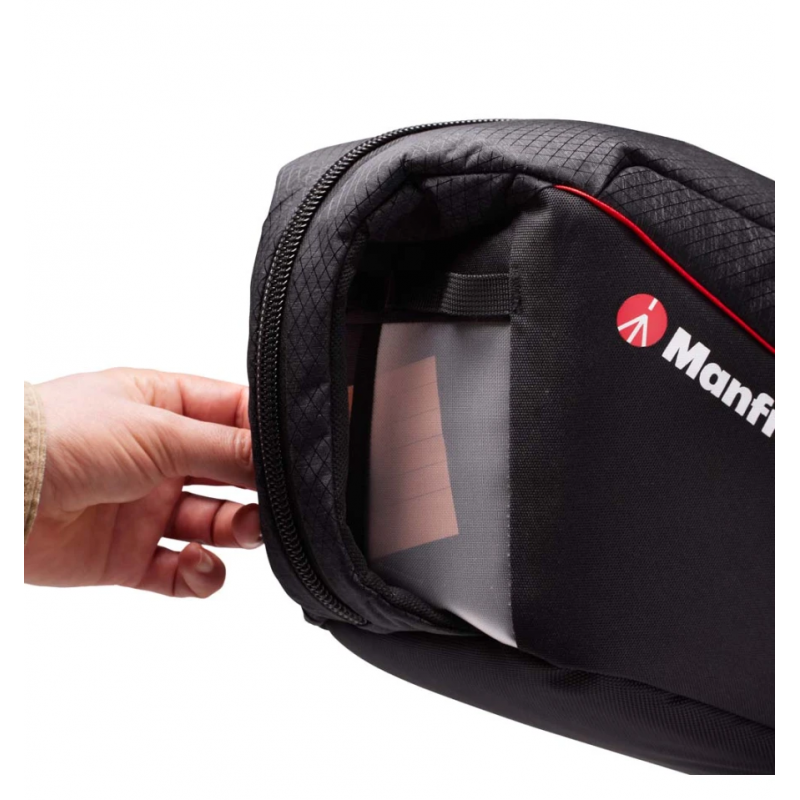 Mantén tus accesorios seguros con un bolsillo interior con cremallera y un compartimento oculto diseñado para un dispositivo de seguimiento. Una correa de velcro ajustable estabiliza el trípode durante el transporte, mientras que un portaetiquetas externo facilita la identificación en lugares concurridos. El diseño apilable optimiza el espacio en estudios, vehículos o maletines.