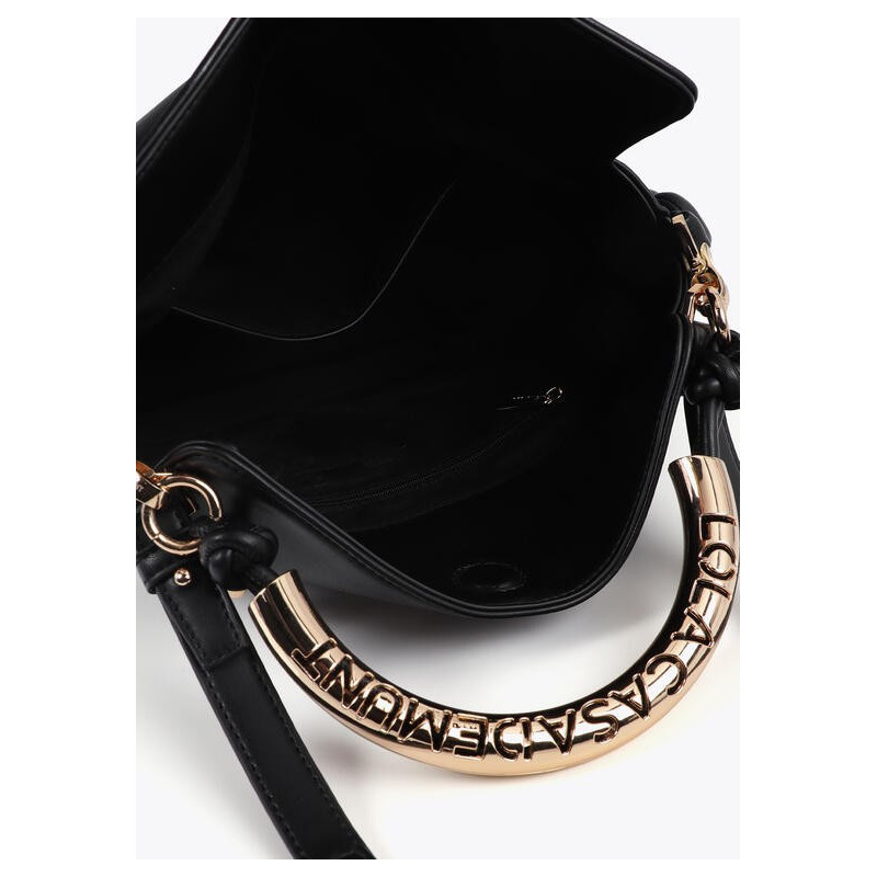 Bandolera de diseño sofisticado con asa metalizada personalizable. Incluye una correa ajustable y detalles trenzados laterales. Interior espacioso forrado en tela fina. Cierre magnético para mayor seguridad. Ideal para llevar con estilo y elegancia.