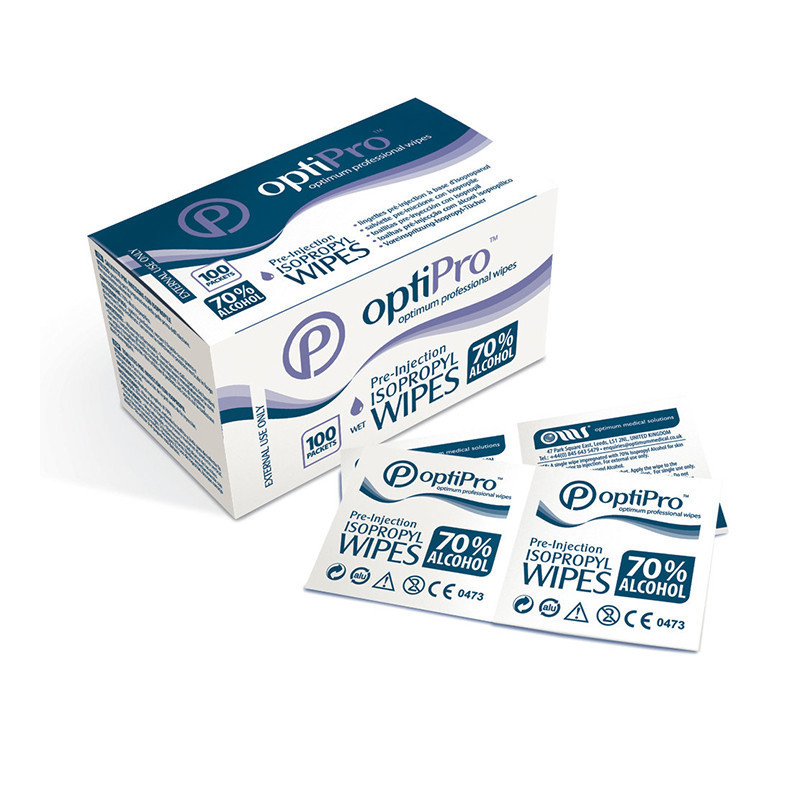 - 1 caja de 100 unidades toallitas alcohol 6 x 3 cm