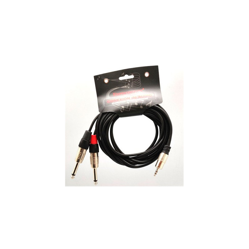EUROCONNEX Cable Hifi Audio Jack/m 3.5MM Stereo a 2X Jack/m 6.3MM Mono 3MTRS 4306-3 Negro