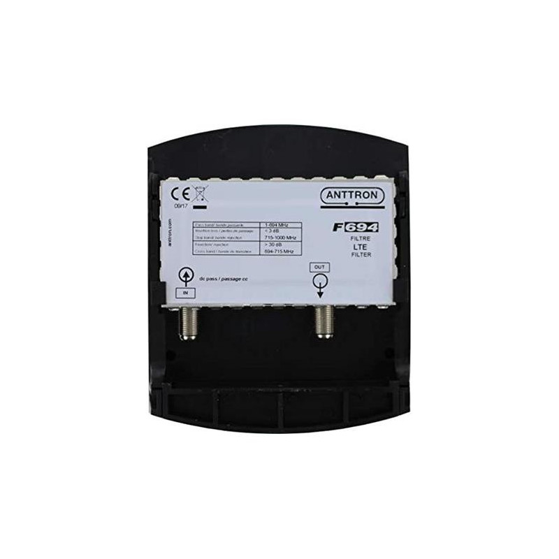 FILTRAR LTE ANTTRON F694 . Filtro LTE ANTTRON en caja para fijar al mástil . Pérdida de 3 dB de paso . Atenuación de 50 dB para los canales 48-69 .