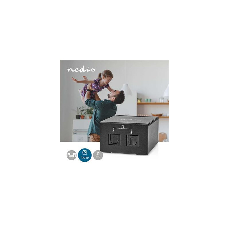 Este conmutador de TosLink de 2 vías Nedis está diseñado para seleccionar la señal de audio entre 2 entradas ópticas digitales a 1 salida, con cables TosLink (ópticos). La longitud máxima admitida del cable de fibra óptica es de 5,0 m, con una transmisión de señal de audio fiable y sin pérdidas. Esto significa que se conservan todos los datos originales de sus dispositivos.