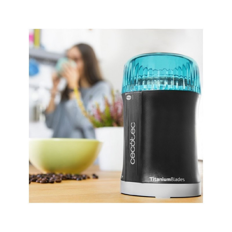 Molinillo compacto para café y especias de 200 W con cuchillas con recubrimiento de titanio.
