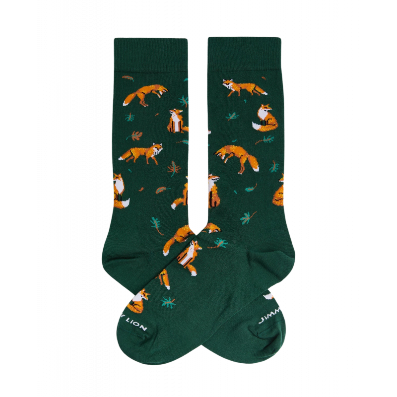 Los calcetines Dusk Fox destacan por su diseño sutil y elegante, con un estampado de pequeños zorros que aporta personalidad sin perder la versatilidad del día a día. Forman parte de la colección The Night y están confeccionados en algodón orgánico peinado para ofrecer suavidad, transpirabilidad y una comodidad que se nota desde el primer uso. * Colección: The Night * Largo: media caña * Estilo: casual * Composición: 78 % algodón orgánico peinado, 20 % poliamida, 2 % elastano * Sensación: suaves, resistentes y transpirables * Diseño: base verde con pequeños zorros distribuidos por toda la prenda * Cuidados: lavar en agua fría, evitar lejía, lavar del revés, no usar secadora, no planchar, retirar la etiqueta tirando suavemente del hilo