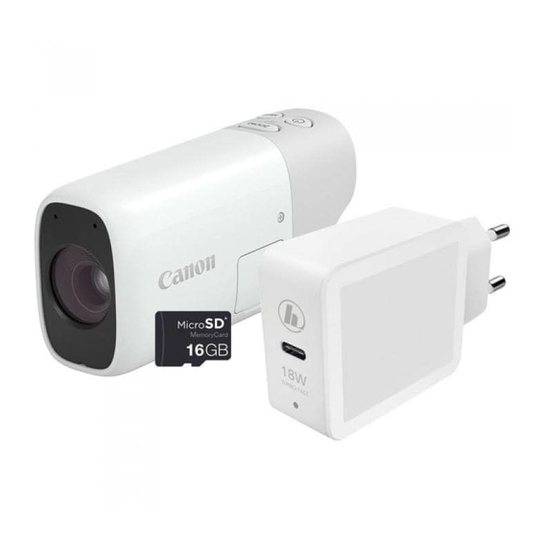 Familiarízate con este kit de cámara monocular Full HD de 12,1 MP con superzoom que cabe en la palma de la mano. Con su impresionante óptica de 100 mm y 400 mm, y su zoom ampliado digitalmente de 800 mm, esta PowerShot ZOOM, ligera y totalmente automatizada, es ideal para la observación de aves, los deportes y los viajes, pues se acerca al sujeto desde más lejos. También es una opción fantástica para familias que quieran capturar sus escapadas. El kit lo completa una tarjeta microSD de 16 GB que permite grabar vídeos Full HD de alta calidad. También incluye un adaptador de carga USB tipo C de 18 W con carga rápida que ayuda a prolongar la duración de la batería de la PowerShot ZOOM.