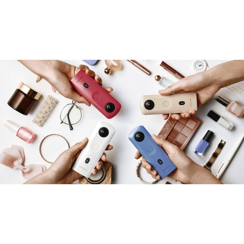 Además, incorpora una pantalla OLED en la parte inferior del cuerpo que permite comprobar de un solo vistazo una gran cantidad de información, como los modos de ajuste y la capacidad de carga restante de la batería. La RICOH THETA SC2 también cuenta con un nuevo botón que permite al usuario cambiar al modo de temporizador automático, haciendo que la cámara sea mucho más fácil de operar de manera independiente. Manteniéndose fiel al concepto de producto compacto y ligero, la RICOH THETA SC2 se puede utilizar como una cámara para videoblogs, ya que se puede llevar fácilmente encima para grabar los eventos del día a día. Está disponible en cuatro colores diferentes, siendo posible elegir el que más convenga en función del escenario en el que se va a utilizar o a las preferencias de cada uno. Esta es la cámara perfecta para las personas que disfrutan compartiendo imágenes y vídeos en las redes sociales, pero también para aquellos que desean empezar a usar una cámara de 360 grados.