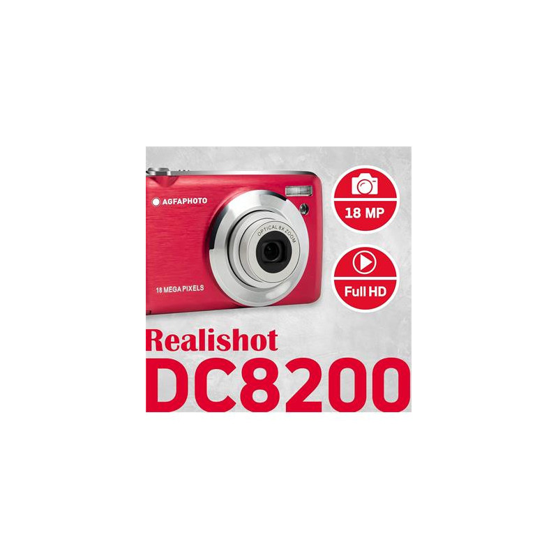 AGFA Photo Realishot DC8200 - Cámara Digital compacta (18MP, vídeo Full HD, Pantalla LCD de 2,7 Pulgadas, Zoom óptico 8X, batería de Litio y Tarjeta SD de 16 GB) Rojo