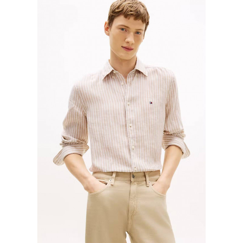 LINEN BENGAL STRIPE RF SHIRT SANDALWOOD