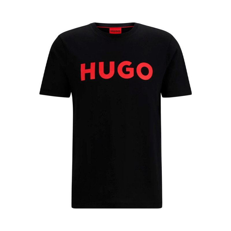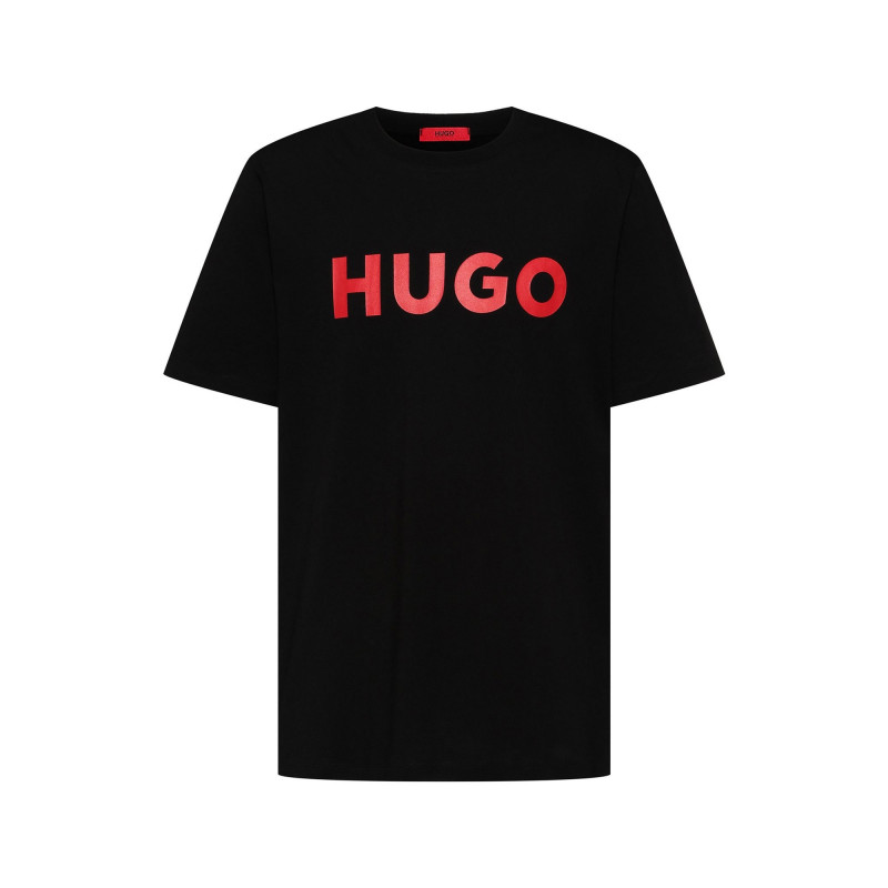 Una camiseta imprescindible HUGO Hombre. Esta camiseta de corte recto está elaborada en punto de algodón puro y tiene un logo HUGO en contraste estampado en el pecho.