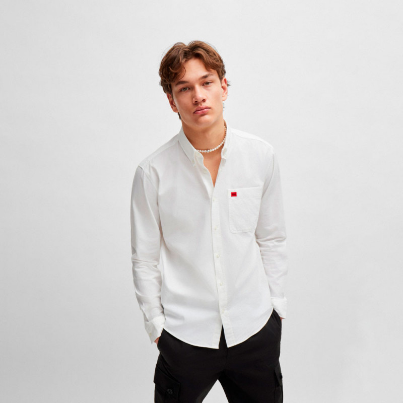 Esta camisa HUGO Hombre slim fit es un básico casual y elegante. Confeccionada en suave algodón Oxford para un confort atemporal. Cuello abotonado. Etiqueta con logo roja.