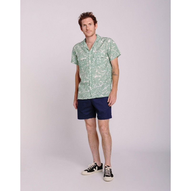 Camisa menta de manga corta con estampado. Bolsillos en el pecho, cuello hawaiano y corte holgado. Consejo del equipo: si eres mujer, llévate este modelo en la talla inferior a tu talla habitual COMPOSICIÓN 100% tencel, botones de corozo natural ¿Y CÓMO SE AJUSTA? Vincent mide 1,83 m, pesa 75 kg y usa una talla L. Claire mide 1,73 m, pesa 57 kg y usa una talla S. PROPIEDADES Unisexo ORIGEN Hecho con en Portugal