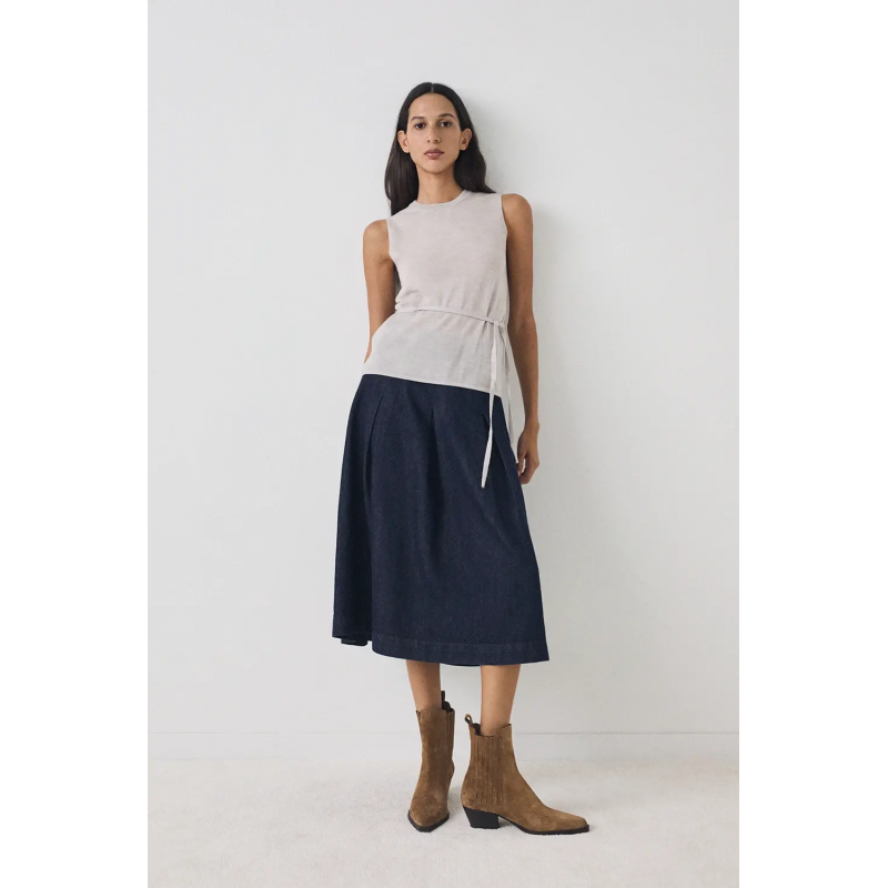 El Top Setter en tono taupe de eseOese es una prenda de tirantes finos confeccionada en punto de alta calidad. Presenta un cuello caja canalé que aporta estructura, y un sutil cinturón fino del mismo punto que marca la cintura con elegancia. Su largo aproximado en talla S es de 60 cm, lo que lo convierte en una pieza versátil para combinar con faldas, pantalones de tiro alto o bajo una blazer ligera.  Detalles del producto: * Tirantes finos tipo galga fina.  * Cuello tipo caja canalé.  * Detalle de cinturón fino integrado en el mismo punto.  * Largo aproximado para talla S: 60 cm.  * Composición: 100 % lana.  * Color: taupe * Marca: eseOese