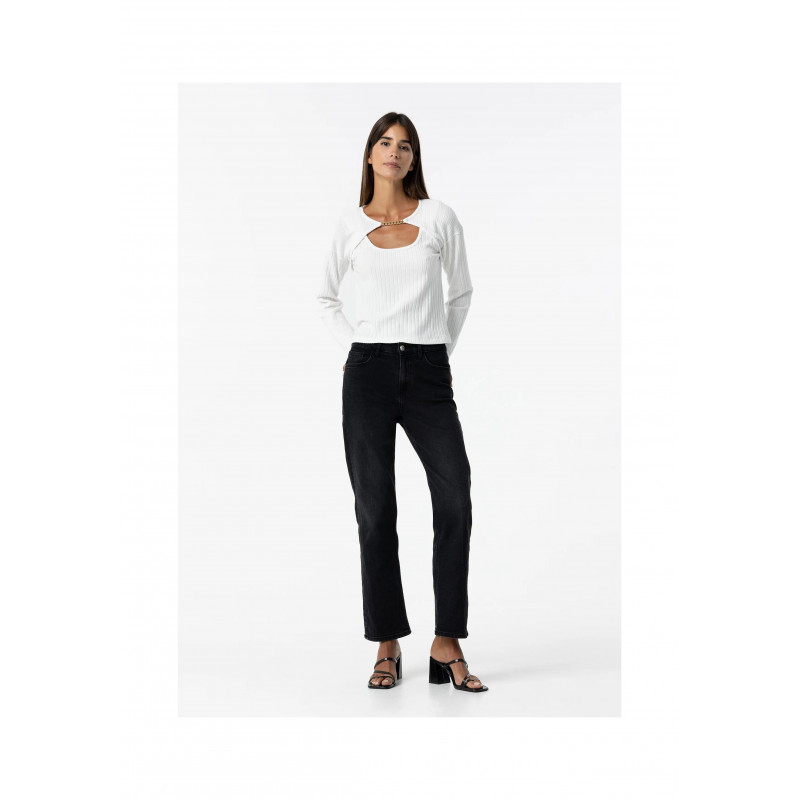 Camiseta de tacto suave con manga larga. Detalle aberturas con aplique dorado. Composición 72% Poliester 25% Viscosa 3% Elastano ***DISPONIBLE ONLINE O RECOGIDA EN TIENDA***