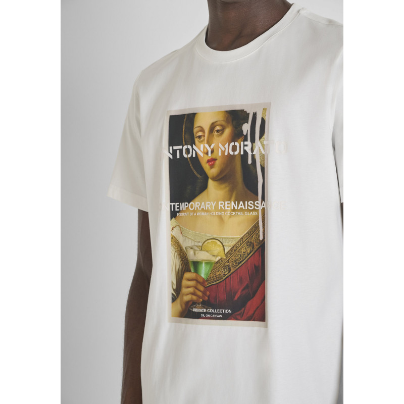 Camiseta relaxed fit de cuello redondo confeccionada con un suave punto de algodón. Este modelo combina a la perfección el arte clásico y el urbano, expresados en una inédita combinación. El estampado en la parte posterior con efecto fotográfico retoma un tema renacentista insertando elementos modernos en contraste para un resultado irreverente. Una prenda lista para dejar huella, un verdadero imprescindible que tener en tu colección de camisetas de Antony Morato.