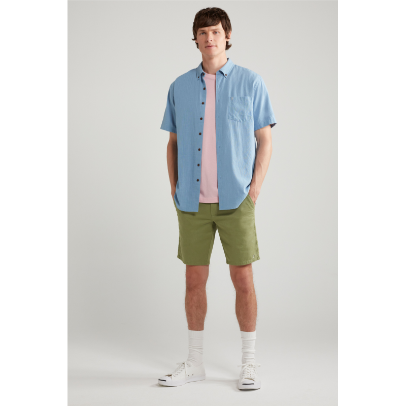 100% Algodón Orgánico Ajuste moderno Cuello redondo ribeteado acanalado. Logotipo de Farah bordado La modelo mide 6'2" y usa talla mediana Lavar a maquina