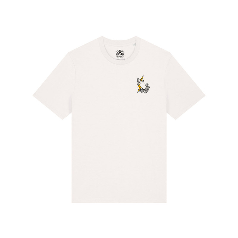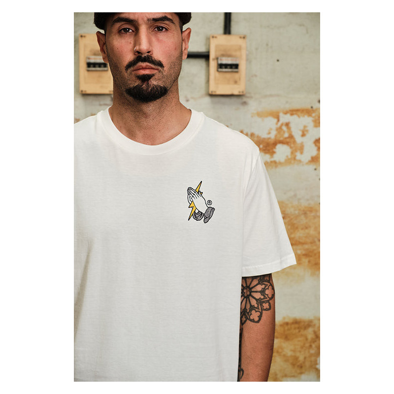 Camiseta Thundernoise, fabricada en tejido orgánico de alta calidad. Perfecta para entrenar, con diseños increíbles para lucirlos en cada entrenamiento o con tu outfit diario.   Detalles: * 100 % algodón orgánico. * 180 G/M². * Unisex Regular Plus fit. * Manga corta. * Color Off White. * Impresión delantera y trasera. * Serigrafiado. * Certificado por PETA, Fair Wear y Oeko Tex.