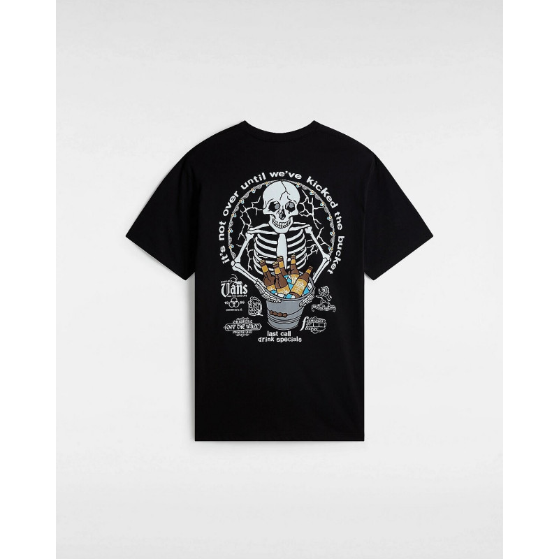 La camiseta Bucket List es un modelo de manga corta y cuello redondo, confeccionado en un algodón más grueso de lo habitual y decorado con el logotipo de Vans en la parte delantera y un gráfico en forma de esqueleto disfrutando de una noche de fiesta en la espalda.